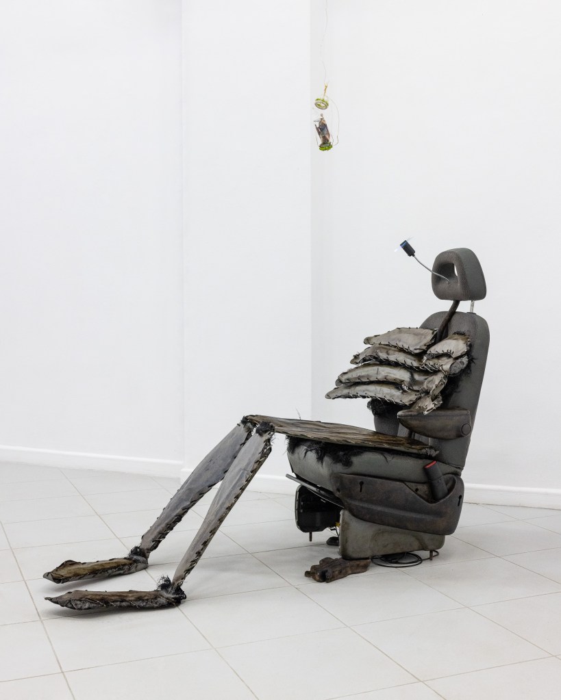 In this work, I refer directly to the publication of PhD Piotr Karocki „Martian liturgical calendar”, which outlined the problems of spiritual life on Mars. Numerous practical references to the liturgical year in the life of a Catholic on the Red Giant opened me up to finding solutions, i.e. the fusion of its satellites – Phobos and Deimos, an attempt to regulate the architectural idea for sacred buildings („See you on Mars, the planet of the first neo-Catholics”). I also took up the subject of evolution of faith in a gravity lower than Earth’s. And that’s what the work you see in front of you becomes. The last Catholic, far from the unleashed earthly norms of faith, those who returned to the roots of the Slavic culture. In the company of St. Christopher protected with cellophane from strong wind and dust. Christopher himself, the object of ridicule and jokes because of his canine beauty, for which he reportedly asked God himself. Cananeus, on the other hand, comes from Latin and means Canaean (by origin), and his dog-head is translated from the word cynocephalus, meaning the legendary people of Anatolia, whose heads were supposed to resemble dog faces. In the current nomenclature, he is known primarily for carrying baby Jesus across Jordan – that is, the activity he was doing about every day. He took the job because of his previous service to the devil, but it may be a metaphor for the Emperor Trajan, who was responsible for his Christian martyrdom. He, himself was trying to boil him alive, but it is said that it was not only his face that marked his doginess. Only the beheading killed the giant.