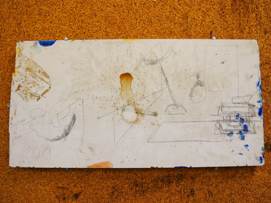 50 x 25cm, sketch on a board found in the basement, 2025